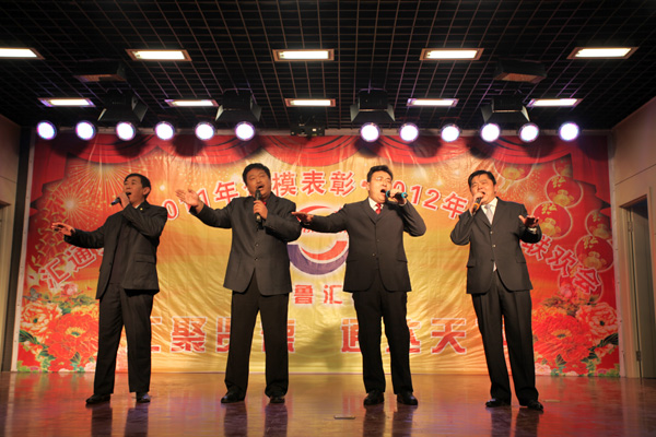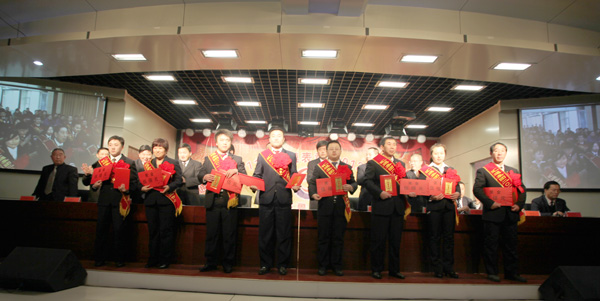 2011年12月31日,匯通集團2011年度表彰暨2012年新年聯歡會在集團公司大禮堂隆重舉辦。首先,董事長發表了熱情洋溢的講話,感恩匯通職工及其家屬對匯通集團的辛勤付出,總結2011年集團公司在各方面工作取得的成果,展望2012年集團公司的發展愿景。隨后,集團公司各位領導為2011年度先進模范頒獎。頒獎項目共有七項,分別是安全文明施工單位獎、優秀高級技師獎、模范干部、先進工作者、生產標兵、先進班組、先進科室。對先進個人頒發證書及500元獎金,對先進集體頒發獎牌及1000元獎金。通過本次表彰,激勵全體員工在新的一年里統一思想,堅定信心,勤奮工作,再創佳績。同時也希望沒有受到表彰的部門和個人,更要以積極的姿態、創新的意識、樂觀的情緒迎接新的挑戰,爭當先進。