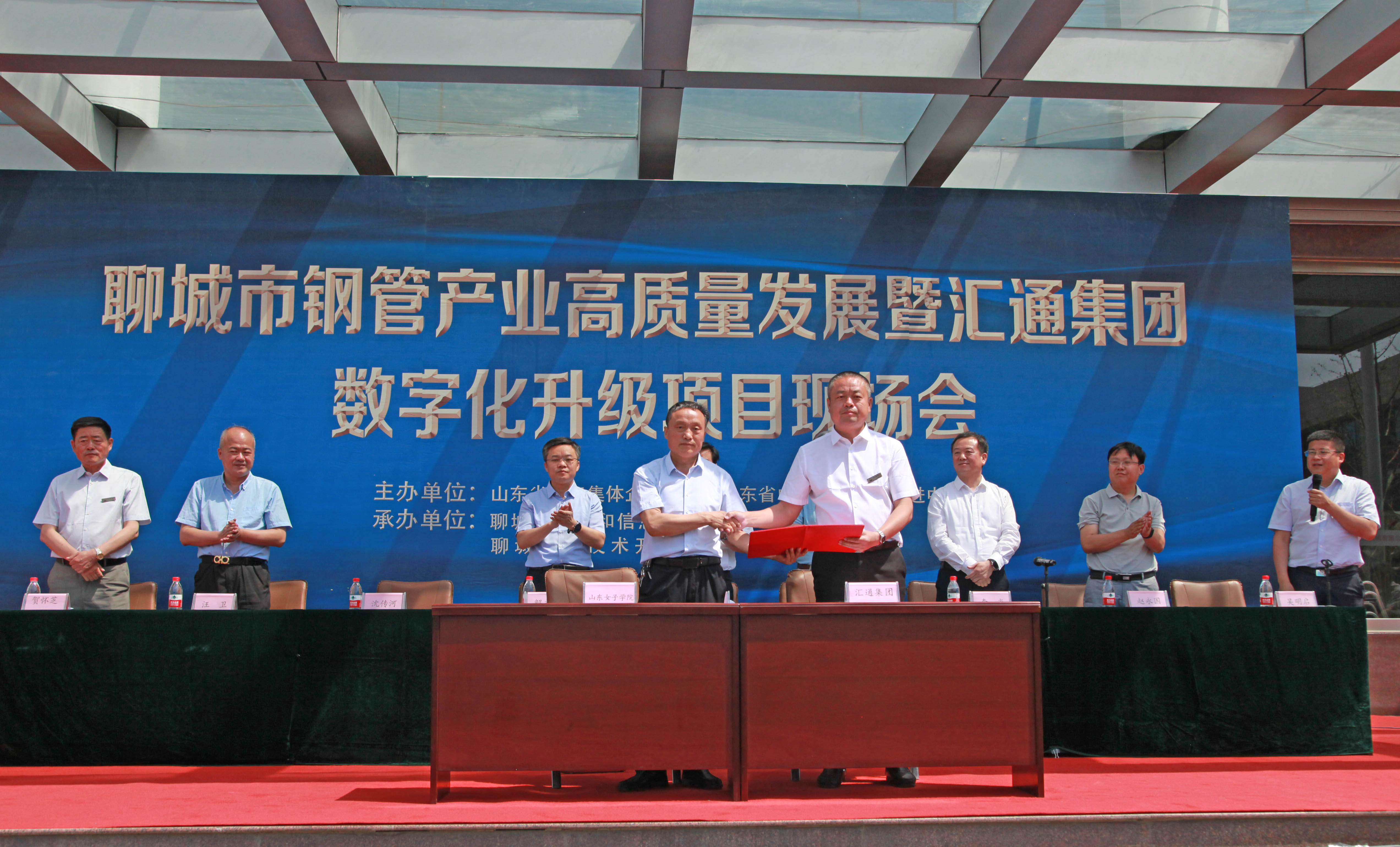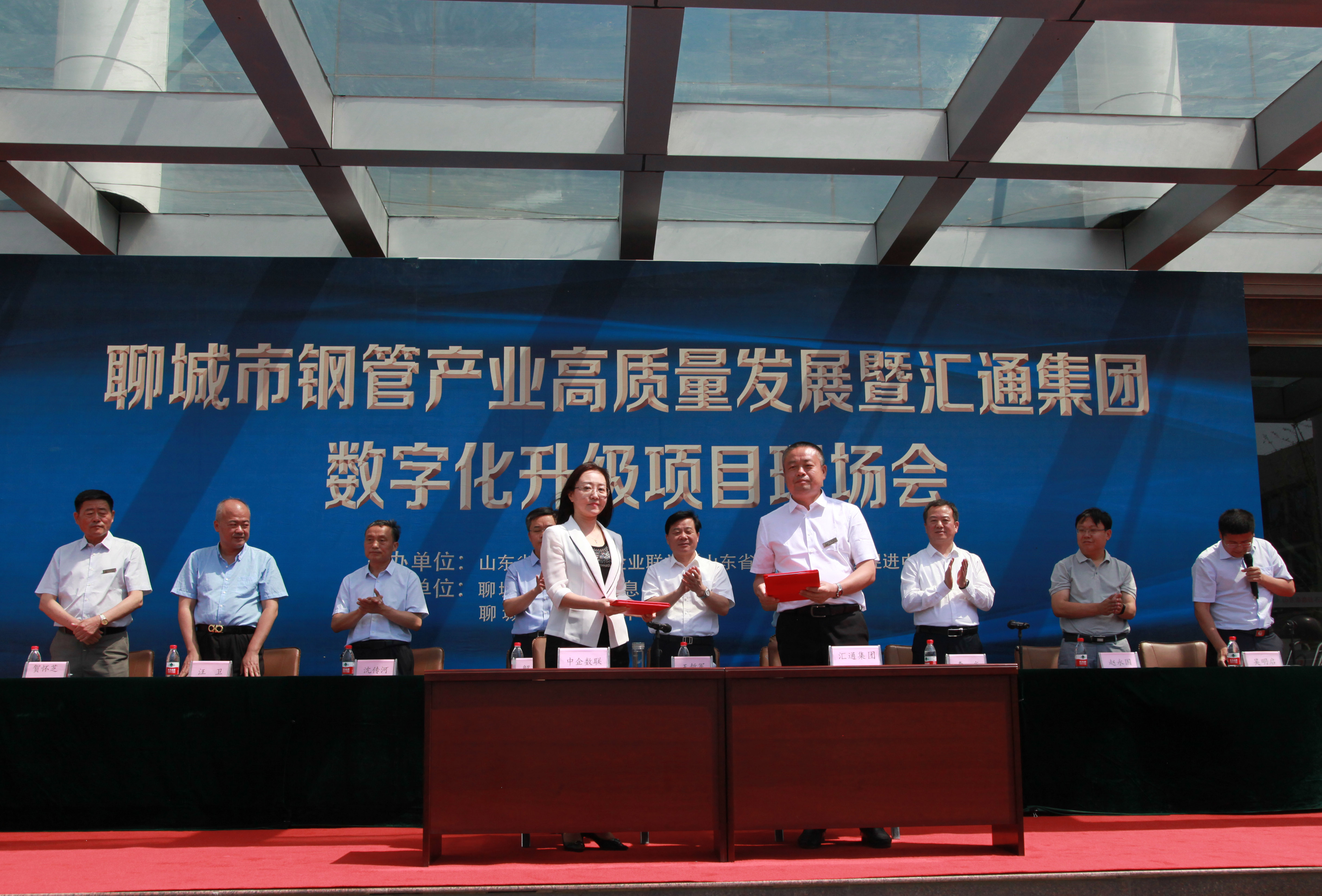 6月8日上午,山東省輕工集體企業(yè)聯(lián)社聯(lián)合聊城市工業(yè)和信息化局、聊城經(jīng)濟技術(shù)開發(fā)區(qū)在山東匯通集團組織召開聊城市鋼管產(chǎn)業(yè)高質(zhì)量發(fā)展暨匯通集團數(shù)字化升級項目現(xiàn)場會。出席大會的有山東省輕工集體企業(yè)聯(lián)社黨組書記、理事會主任王哲軍,中國鋼結(jié)構(gòu)協(xié)會鋼管分會秘書長莊鋼,聊城市工信局黨組書記、局長解志超,聊城市工信局黨組成員、副局長吳明啟,聊城經(jīng)濟技術(shù)開發(fā)區(qū)黨工委副書記、管委會副主任李光,山東女子學院經(jīng)濟學院院長沈傳河,復(fù)旦大學計算機科學技術(shù)學院教授、副院長汪衛(wèi),齊魯工業(yè)大學電子電氣與控制學部副主任趙永國,以及中企數(shù)聯(lián)信息技術(shù)(山東)有限公司董事長王芳、山東有人物聯(lián)網(wǎng)股份有限公司渠道總監(jiān)張洋等嘉賓和匯通集團高中層干部職工百余人。本次大會由聊城市工信局黨組成員、副局長吳明啟主持。會議按照防疫要求認真落實了各項防控措施。