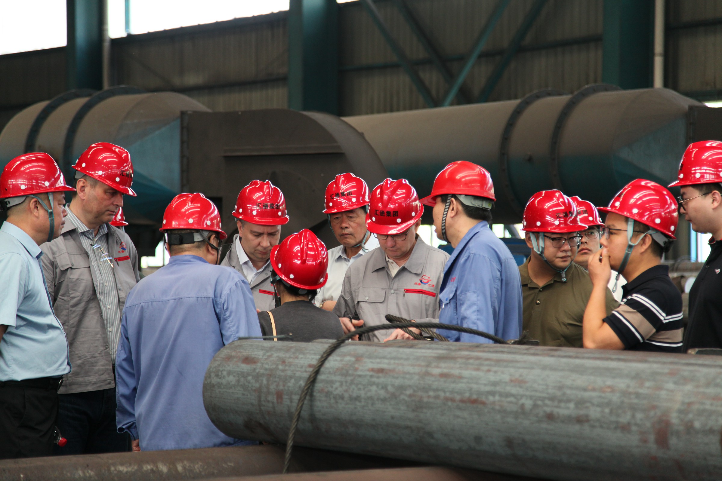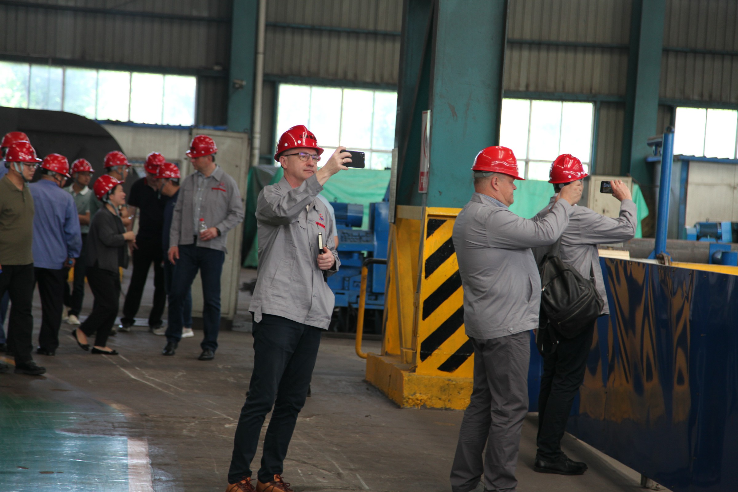 6月27日上午,俄羅斯TMK集團(tuán)代表團(tuán)在中國重型院(原西重所)機(jī)械、工藝總工程師丁鋒和海外項(xiàng)目開發(fā)經(jīng)理安啟航的陪同下,蒞臨匯通集團(tuán)參觀考察。集團(tuán)董事長賀懷芝、總經(jīng)理賀懷廣,副總經(jīng)理?xiàng)顚W(xué)洪、賀猛、齊萬青陪同參觀。