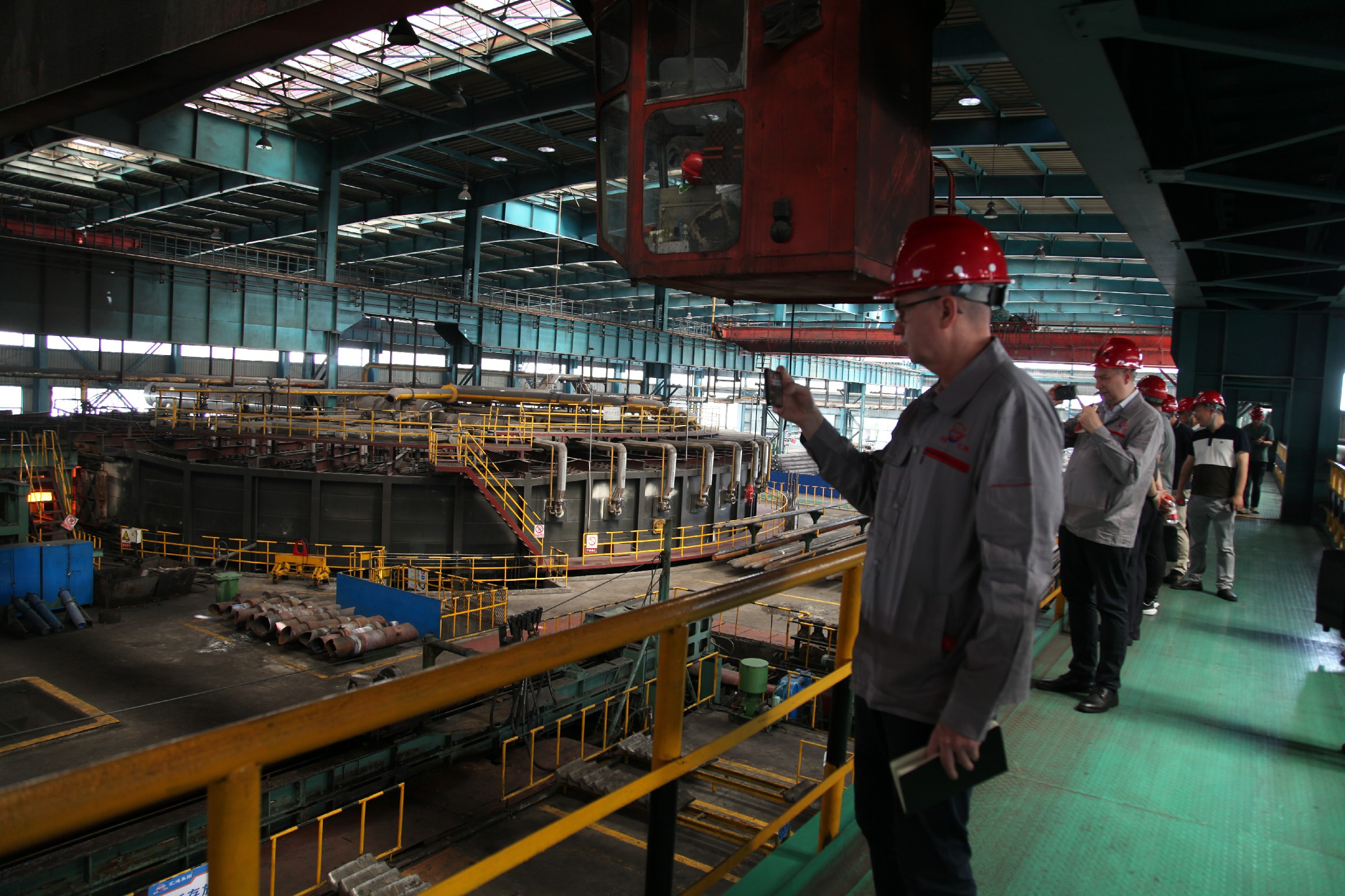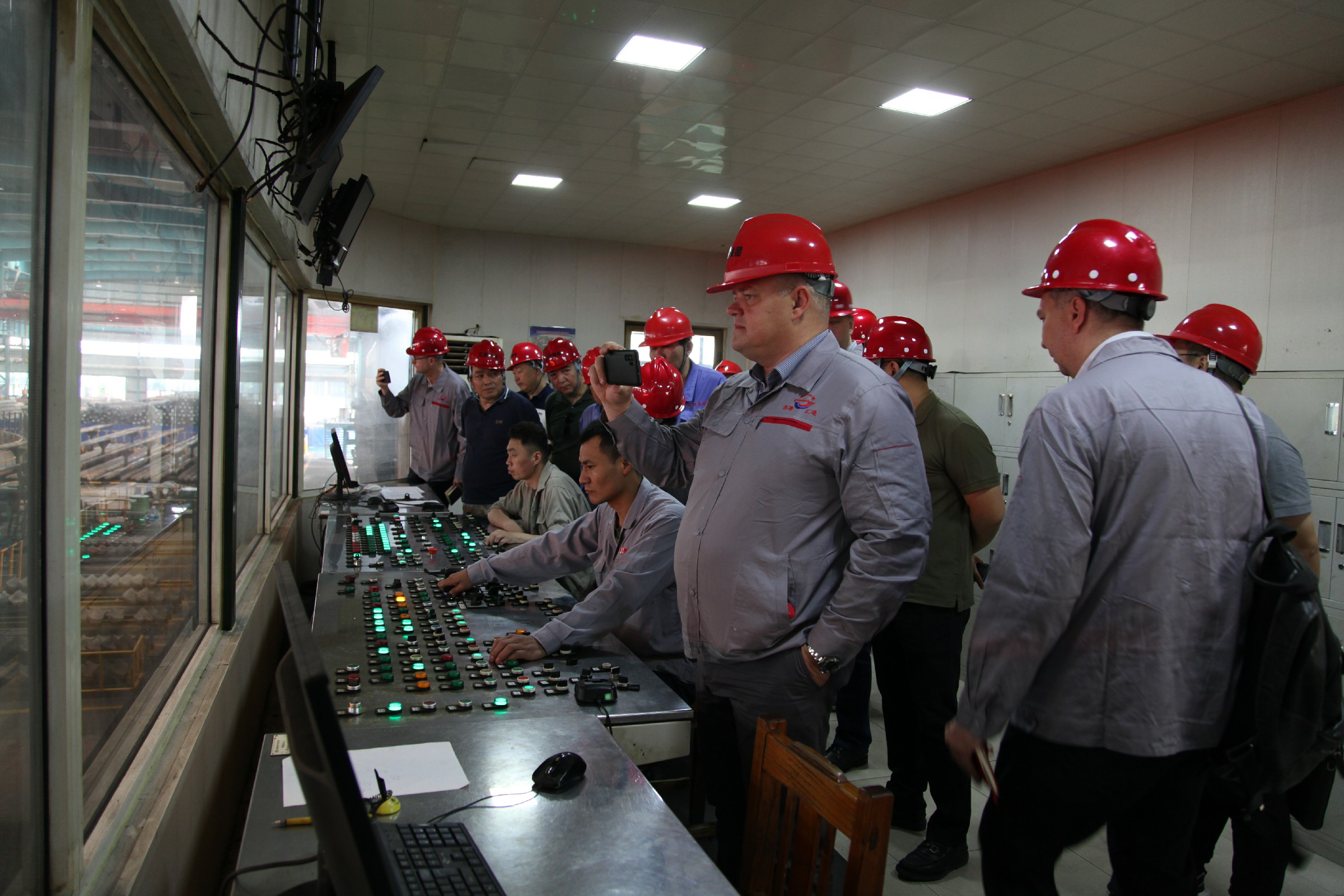 在Φ273生產(chǎn)車間,代表團(tuán)一行認(rèn)真觀摩了現(xiàn)有的自動(dòng)化生產(chǎn)系統(tǒng)。董事長賀懷芝介紹說,作為主營業(yè)務(wù)板塊,集團(tuán)擁有國內(nèi)先進(jìn)的熱軋無縫鋼管生產(chǎn)線5條、冷拔、冷軋機(jī)組30臺(tái)套,熱處理線3套,擁有產(chǎn)能近85萬噸。所生產(chǎn)、銷售的鋼管產(chǎn)品不僅輻射全國外,還遠(yuǎn)銷東南亞、中東、歐洲和美洲。賀總希望以此次參觀考察為契機(jī),能夠與TMK集團(tuán)進(jìn)一步加強(qiáng)聯(lián)系,激發(fā)合作潛能,實(shí)現(xiàn)互惠共贏,促進(jìn)共同發(fā)展。